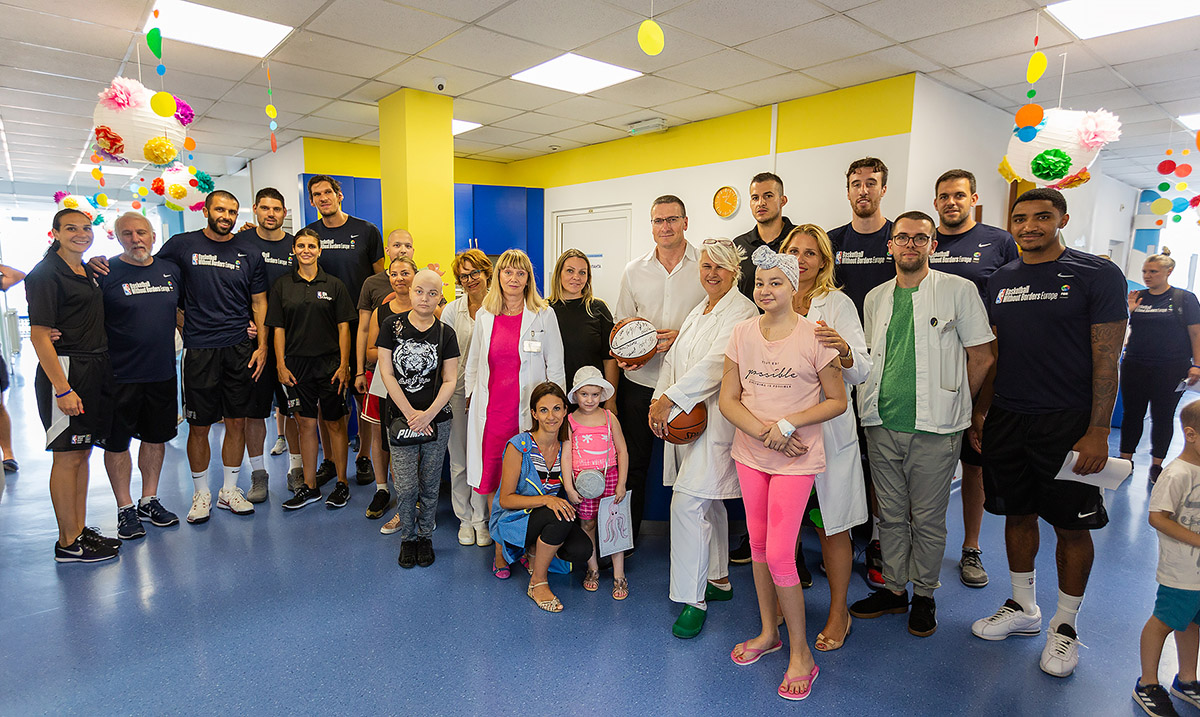 NBA košarkaši i treneri, učesnici kampa „Košarka bez granica“, u sklopu akcije fondacije „NBA Cares“, posetili su mališane na Institutu za onkologiju i radiologiju Srbije i u Univerzitetskoj dečjoj klinici u Tiršovoj, kako bi im uručili poklone i ulili optimizam da izdrže i pobede u teškim danima. Bogdan Bogdanović, Nemanja Bjelica, Boban Marjanović, Ana Dabović, Sonja Petrović, Nikola Vučević, Vladimir Radmanović, Žarko Čabarkapa, Greg Popović, Geri Heris, Frenk Kaminski i drugi proveli su par sati družeći se sa decom.