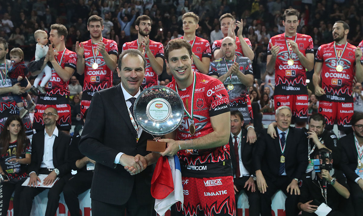 Sir Sejfti Konad Peruđa, za koju igraju Aleksandar Atanasijević i Marko Podraščanin, a Goran Vujević je sportski direktor, osvojila je prvu titulu pobednika Kupa Italije. Peruđa je u finalu, u dvorani Pala Florio u Bariju, savladala Kućine Lube Ćivitanovu, za koju igra Dragan Stanković, sa 3:1, po setovima 16:25, 25:22, 25:20 i 27:25. Aleksandar Atanasijević, korektor Peruđe, proglašen je za najboljeg igrača (MVP) finala.