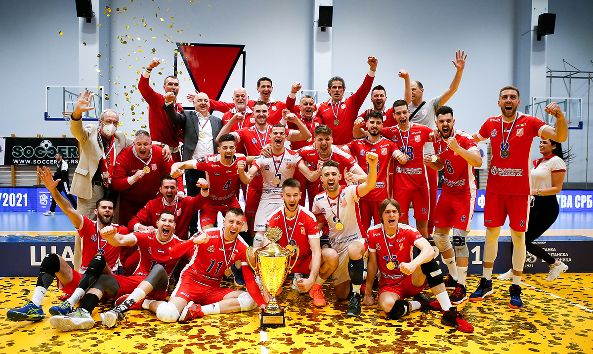 Odbojkaši Vojvodine NS seme iz Novog Sada osvojili su titulu prvaka Srbije i pobednika Banka Poštanska štedionica Superlige 2020/2021. Novosađani su u četvrtom meču finala plej – ofa, večeras u dvorani SC „Master“ u Beogradu, savladali Partizan Soker sa 3:2, po setovima 22:25, 25:19, 21:25, 25:17 i 16:14, posle 128 minuta igre i tako osvojili 18. titulu prvaka države, petu uzastopnu.