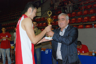 Obren Ćetković, predsednik OK Radnički, predao je pobednički pehar Runming Liju, kapitenu Šandonga.