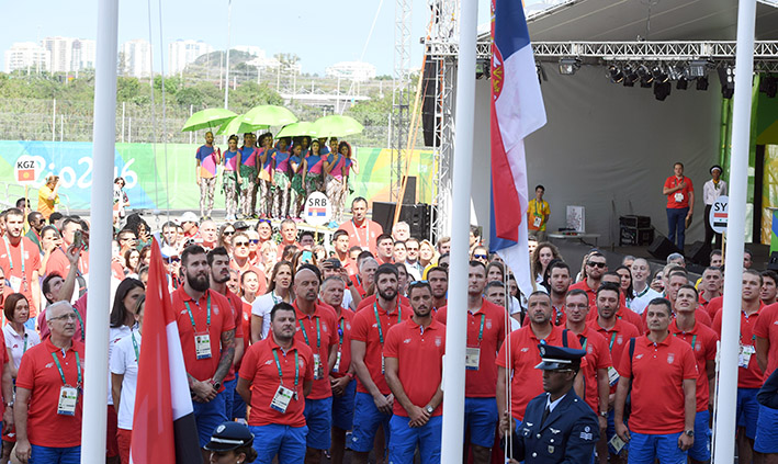 U Olimpijskom selu u Rio de Žaneiru danas je na svečanoj ceremoniji, kojoj je prisustvovao i predsednik Srbije Tomislav Nikolić, podignuta zastava Srbije, čime je domaćin na simboličan način poželeo dobrodošlicu našem Timu.