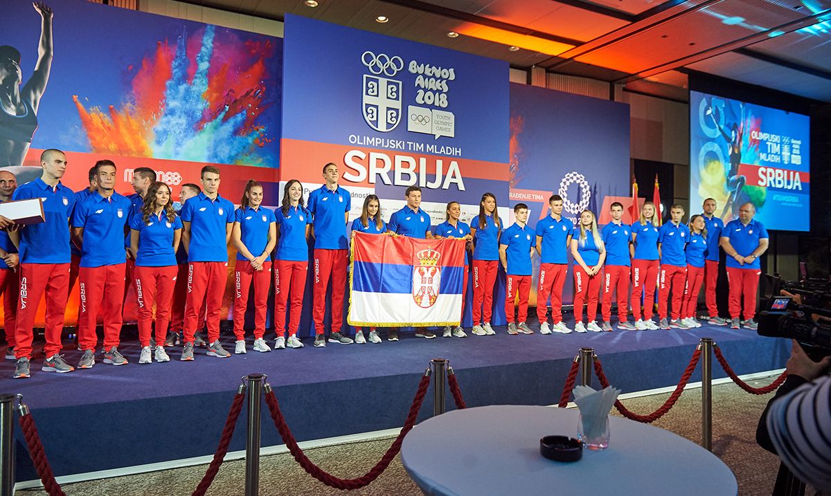 Kako je Izvršni odbor Olimpijskog komiteta Srbije, prethodno, na osnovu predloga Sportske komisije, doneo odluku da zastavu Srbije na ceremoniji otvaranja Igara u buenos Ajresu nosi plivačica Anja Crevar, devojka koja je sa samo 16 godina bila učesnica Olimpijskih igara u Riju, ovom prilikom svečano joj je zastavu uručio Nemanja Majdov, naš džudista koji je na prethodnom izdanju Olimpijskih igara mladih osvojio srebrnu medalju, a nakon toga postao i seniorski šampion sveta.