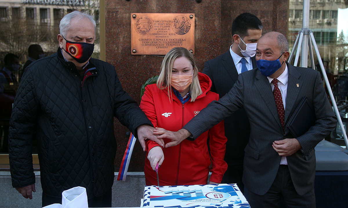 Na spomen ploču predsednik OKS Božidar Maljković položio je lovorov venac, intonirana je himna Srbije, a zajedno sa ministrom Vanjom Udovičićem isekao je rođendansku tortu.