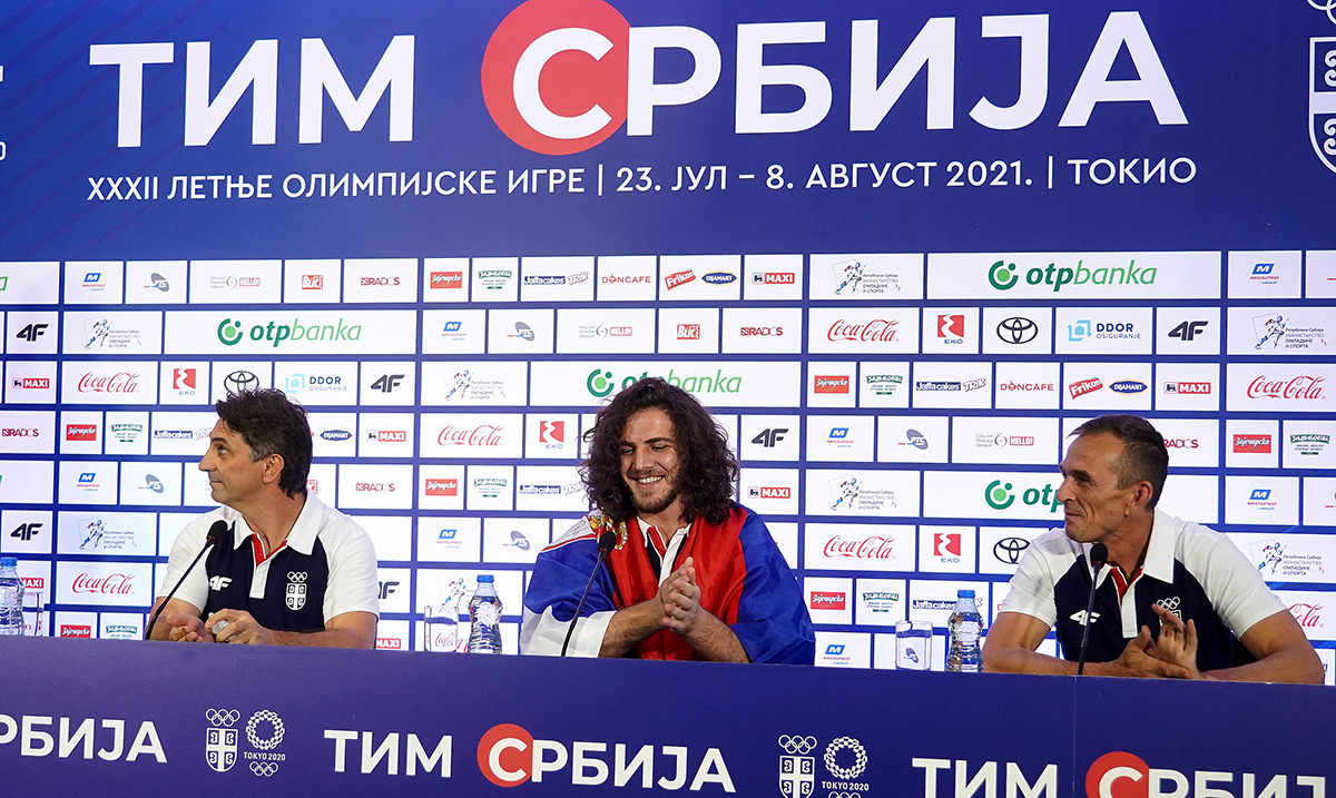 The representative of Serbia in wrestling, Zurab Datunashvili, the winner of the bronze Olympic medal at the Games in Tokyo, arrived in Serbia and on that occasion, a press conference was held at the Nikola Tesla Airport.Reprezentativac Srbije u rvanju,