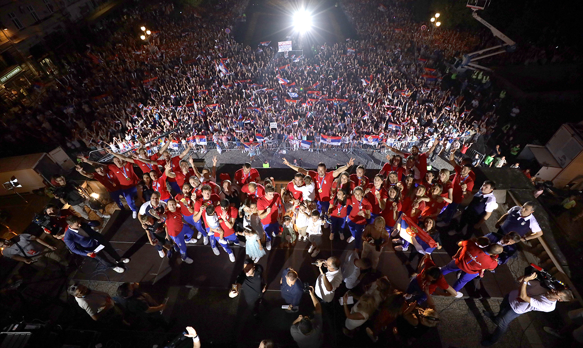 On the plateau in front of the City Assembly of Belgrade, a reception was organized for the members of the Serbian Olympic team who won nine medals at the Games in Tokyo, and the Olympians addressed the audience from the balcony of the City Assembly.Na p