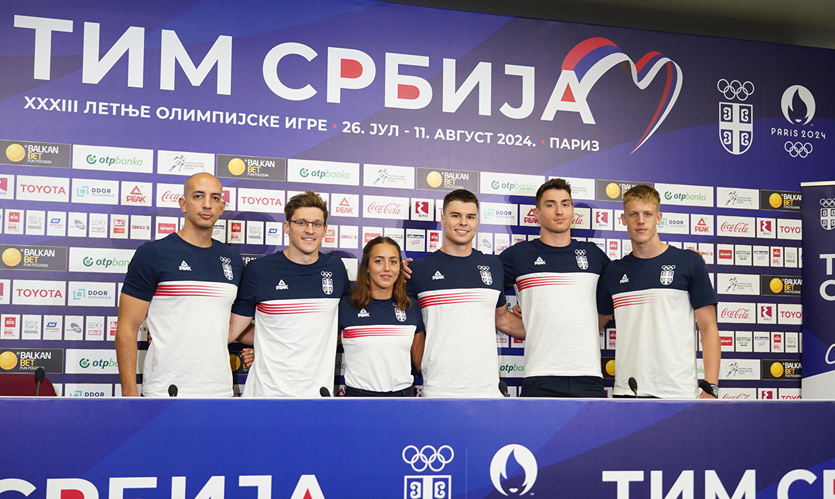 The press conference of the Serbian swimming team before the trip to Paris for the Olympic Games was held in the VIP lounge of Nikola Tesla Airport.Konferencija za medije plivacke reprezentacije Srbije pred put u Pariz na Olimpijske igre odrzana je u VI
