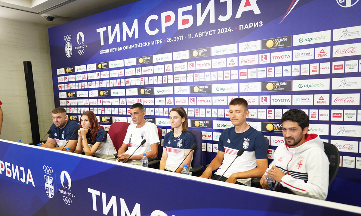The press conference of the Serbian athletics and cycling team before the trip to Paris for the Olympic Games was held in the VIP lounge of Nikola Tesla Airport.Konferencija za medije dela atletske i biciklisticke reprezentacije Srbije pred put u Pariz