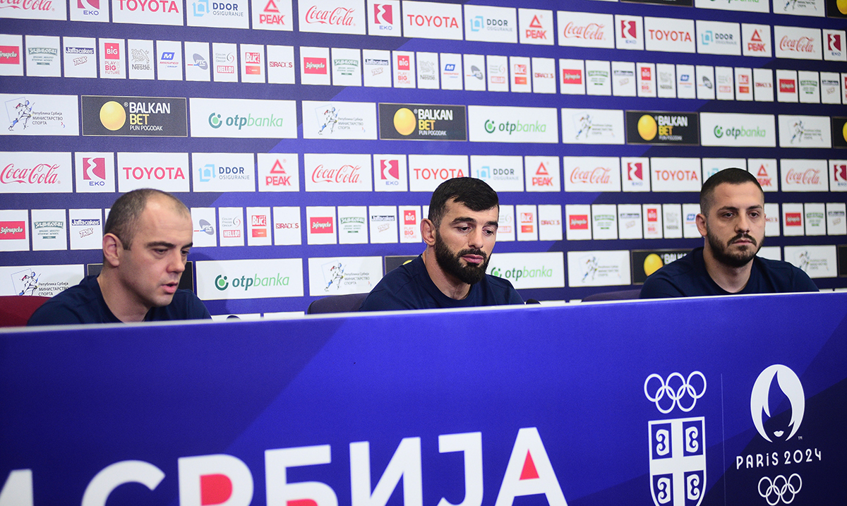 The press conference of the Serbian wrestling team before the trip to Paris for the Olympic Games was held in the VIP lounge of Nikola Tesla Airport.Konferencija za medije rvacke reprezentacije Srbije pred put u Pariz na Olimpijske igre odrzana je u VIP