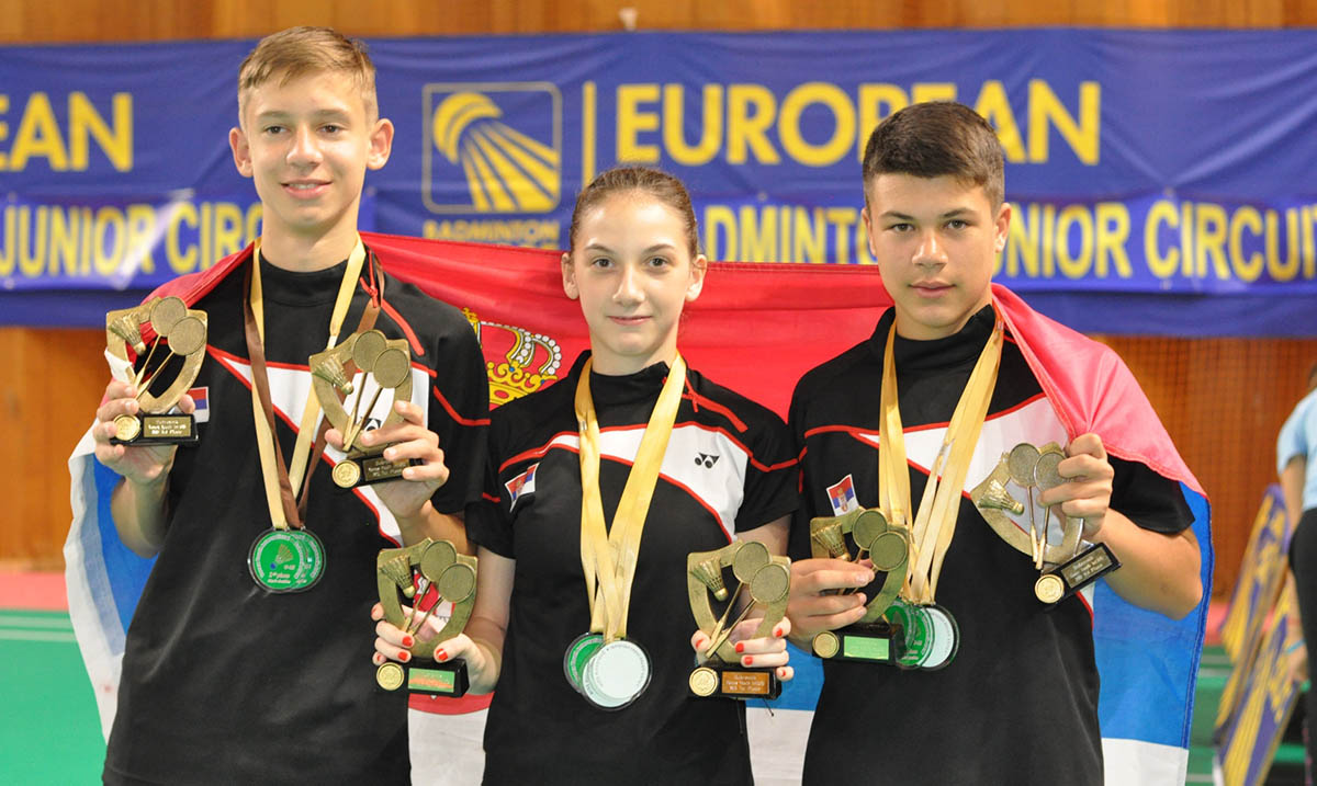 Marija Sudimac, Sergej Lukić i Matija Cupara pokorili su Dubrovnik. Naši reprezentativci na impresivan način, bez ijednog izgubljenog seta, osvojili su svih pet trofeja u uzrasnoj konkurenciji do 15 godina na Yonex Youth International 2016, koji je u prelepom gradu na obali Jadranskog mora od 7. do 9. oktobra 2016. okupio oko 150 takmičara iz 20-tak zemalja. Lukić je do zlata u muškom singlu stigao ubedljivom pobedom u okršaju za trofej nad Hrvatom Bornom Vadljom (2:0). Naš reprezentativac je do finala stigao maksimalnim učinkom od tri pobeda u A grupi posle čega je u polufinalu savladao Slovenca Mihu Mastena (2:0). U finalu ženskog singla Sudimčeva je bez po muke savladala domaću takmičarku Iru Misir (2:0). Prethodno naša reprezentativka je sa dve pobede zauzela prvo mesto B grupi, potom je u četvrtfinalu bila bolja od Slovenke Nike Brajković (2:0), a u polufinalu od Mađarice Pane Pitel (2:0). Rivalke u finalu singla okitile su se najsjajnijim odličjem u ženskom dublu. U meču za zlato, do kojeg su došle sa tri pobede u B grupi i uspehom u polufinalu u duelu sa Nikom Brajković iz Slovenije i Sunčicom Sertić iz Hrvatske (2:0), naša i hrvatska igračica lako su savladale slovenačku kombinaciju Taja Pipan, Maruša Vračar (2:0). U finalu mešovitih parova Lukić i Sudimčeva bili su ubedljivi protiv Slovenaca Mihe Mastena i Nike Brajković (2:0). Naš miks je u polufinalu bio bolji od Slovenaca Gala Bizjaka i Maruše Vračar (2:0), prethodno zauzevši prvo mesto u A grupi sa tri pobede.
