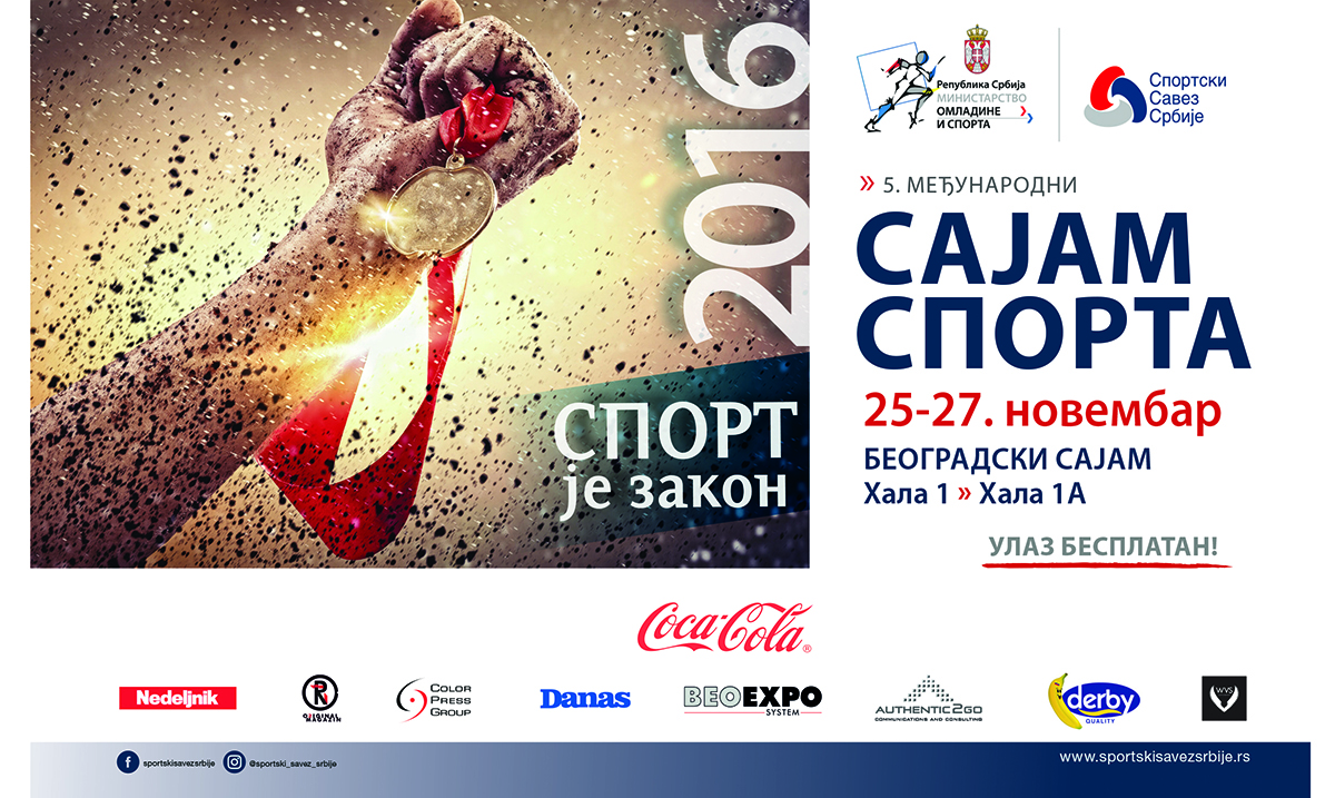 Sajam sporta je jedinstveni regionalni događaj. Sajam sporta 2016 pod nazivom „Sport je zakon“ odžava se u Hali 1 i 1a Beogradskog sajma. Radno vreme Sajma je od 10 do 19 časova, a ULAZ JE BESPLATAN. Pored domaćina, Ministarstva omladine i sporta, Sportskog saveza Srbije, na Sajmu će učestvovati i Paraolimpijski i Olimpijski komitet Republike Srbije, Zavod za sport i medicinu sporta Republike Srbije, Antidoping agencija Republike Srbije, Sekretarijat za omladinu i sport grada Beograda sa Sportskim savezom Beograda, Sekretarijat za omladinu i sport AP Vojvodine sa Sportskim savezom Vojvodine, Sportski savez Kosova i Metohije.