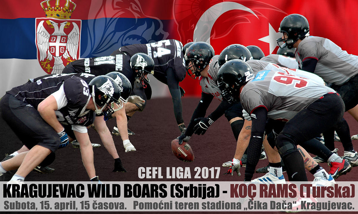 Uskršnje subote otpočinje takmičenje u šampionatu Sportklub Centralnoevropske lige američkog fudbala (SK CEFL), koji startuje dvema utakmicama Istočne konferencije. U Kragujevcu, Divlji veprovi dočekuju novajliju u ligi, Istanbul Koč Remse, na terenu sa veštačkom travom stadiona „Čika Dača“ u 15 časova. Istog dana, beogradski SBB Vukovi gostuju mađarskim Budimpešta Kaubelsima, a ova utakmica počinje pola sata kasnije.