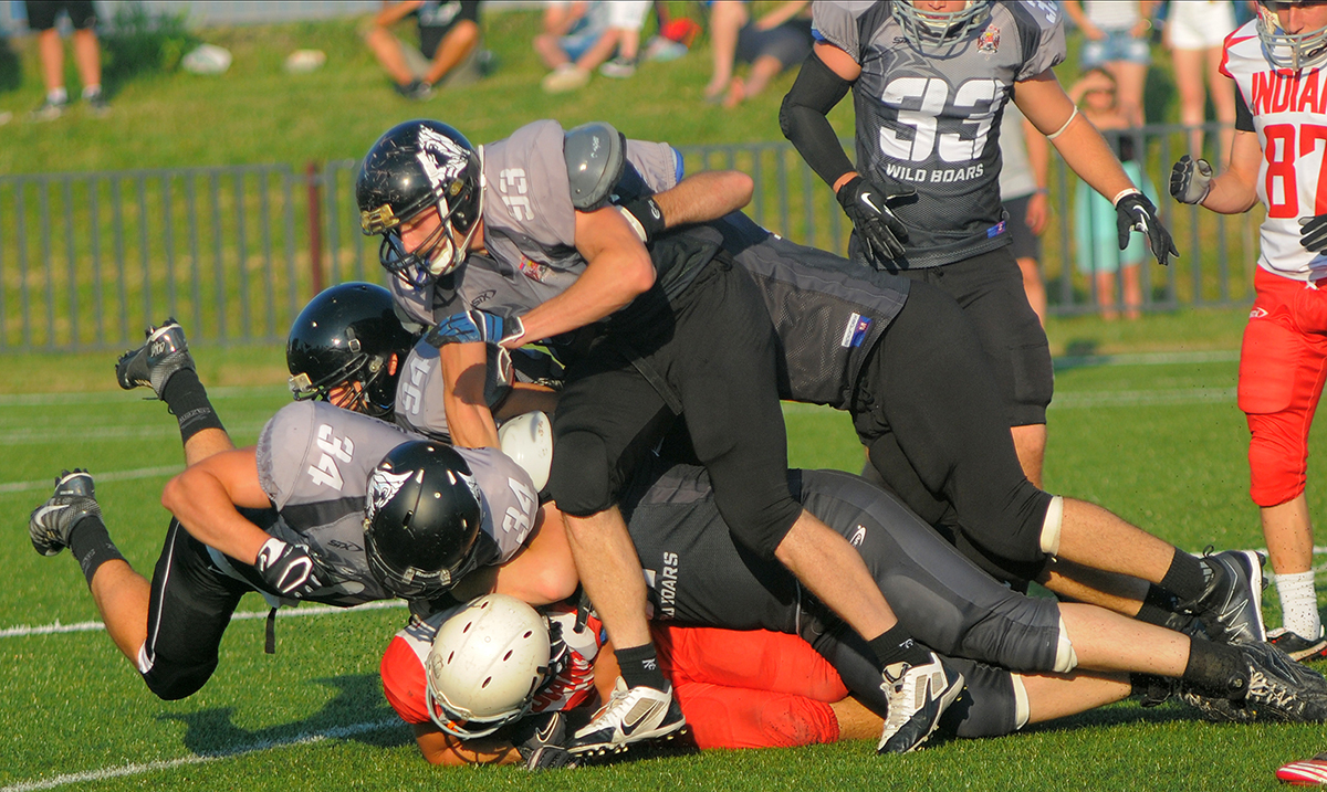 Kragujevac Wild Boarsi braniće titulu šampiona Srbije u američkom fudbalu, za dve nedelje, u Serbian Bowl-u, pošto su u prvom polufinalnom susretu ubedljivo savladali Inđija Indianse, rezultatom 50:3.