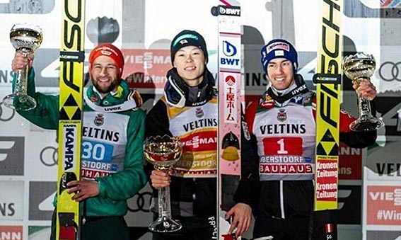 Ovaj 22-godišnji Japanac do pobede u Bišofshofenu došao je skokovima od 135 i 137,5 metara, a iza njega našli su se Austrijanac Štefan Kraft i Nemac Laje.
