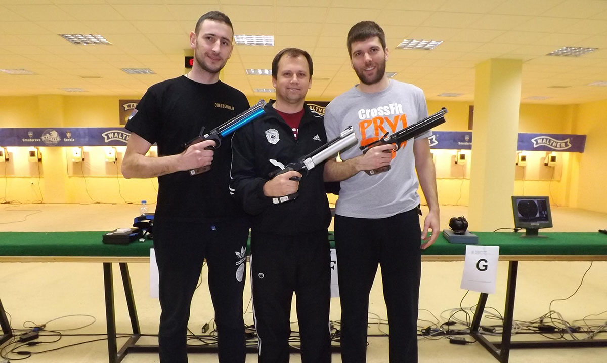 Prvobitno je bilo planirano da u takmičenju seniora pištoljem Srbiju predstavljaju samo Damir Mikec i Dimitrije Grgić. Upravni odbor SSS je prihvatio naknadni predlog da, uz njih dvojicu, u Osijek ide i Duško Petrov, standardni član reprezentacije pištoljem proteklih sezona. Petrov je od decembra imao problema sa povredom. Ipak, uspeo je da se oporavi i izbori za mesto u timu. Ekipa Mikec, Grgić, Petrov je prošle godine na Evropskom prvenstvu osvojila srebro vazdušnim pištoljem i medalju istog sjaja MK pištoljem na Svetskom šampionatu.
