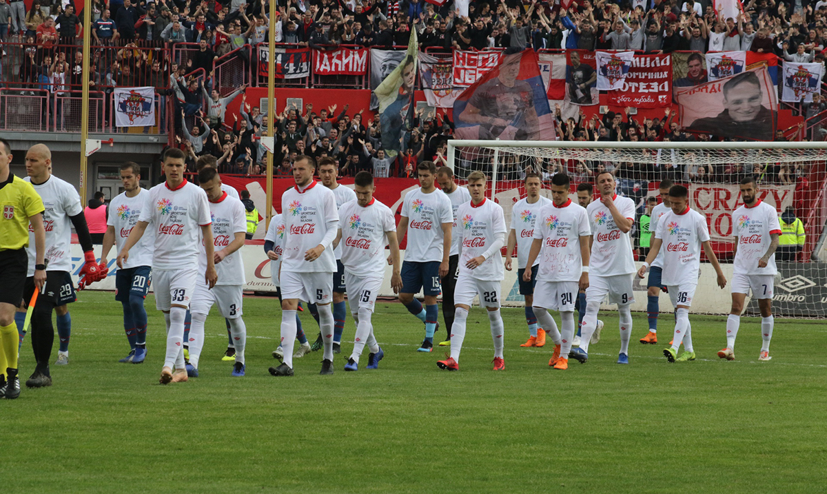 Fudbaleri Crvene zvezde i Vojvodine na prvenstvenu utakmicu istrčali u majcama Dunav osiguranje Sportskih igara mladih Srbije i tako najavili Svečano otvaranje i novi SIM spektakl u Novom Sadu 15. maja