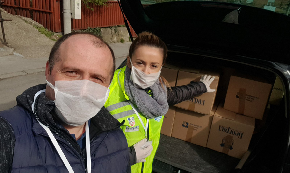 Oni su danas starijim sugrađanima sa teritorije Savskog venca na kućne adrese donosili pakete sa namirnicima, koji su prethodnih nekoliko dana u organizaciji Grada Beograda pripremani u „Štark Areni“.