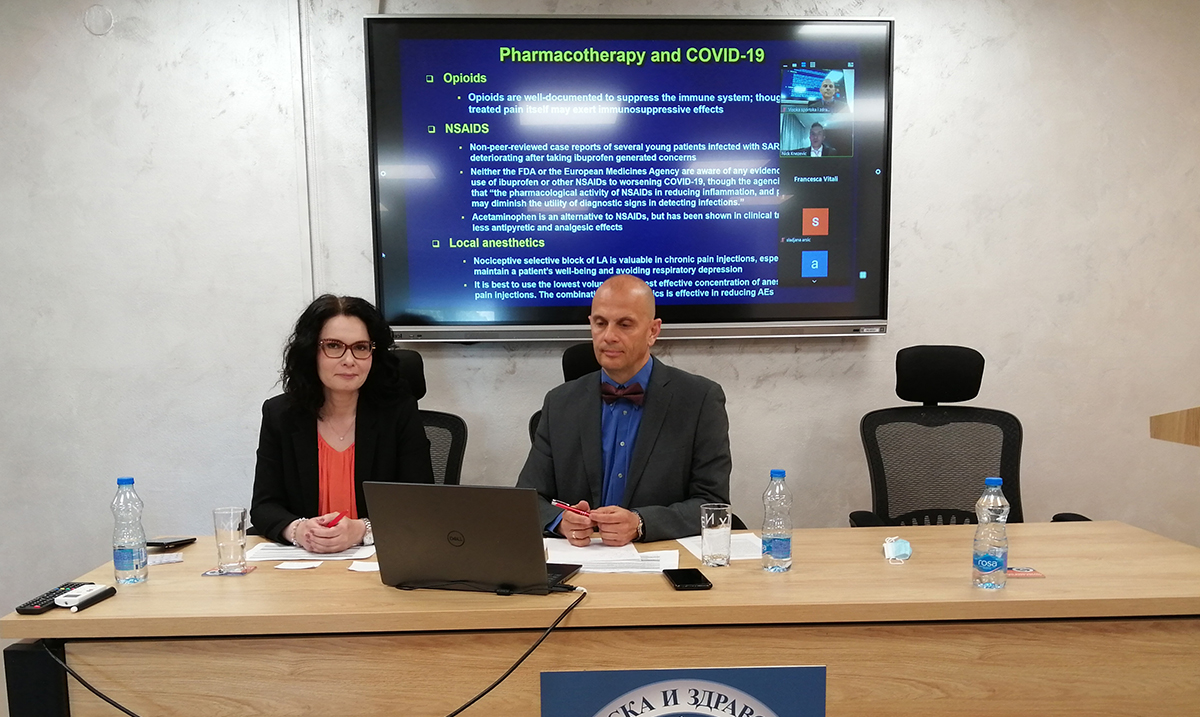 Prof. dr Nebojša Nick Knežević, lekar, anesteziolog, sa univerziteta Ilinois u Čikagu i priznati svetski stručnjak, izložio je značaj nezanemarivanja bola i drugih bolesti u uslovima pandemije iako su mnogi medicinski tretmani odloženi, kad je bol prisutna tu se uvek nalaze načini, a jedan od tih je kako je naveo tele-zdravlje (telehealth) i mogućnosti Centara za brigu o zdravlju i usluge medicinske pomoći da svoje usluge prošire na celoj teritoriji SAD i o Agenciji za borbu protiv narkotika (DEA) koja je dala  dozvolu lekarima koji su registrovani u toj Agenciji da prepisuju opijate na osnovu pregleda obavljenih na daljinu.