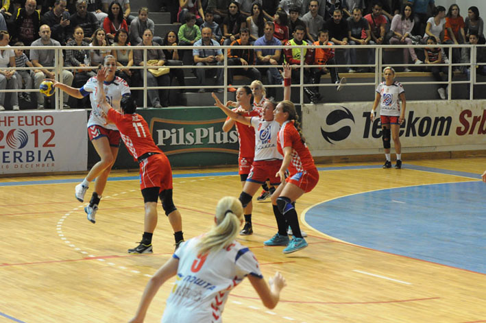 Kao da je sjajna atmosfera u petrovačkoj hali, gde nije mogla ni igla da padne među 2000 gledalaca, okovala noge srpskim rukometašicama, koje su slabo otvorile meč. Hrvatice su kažnjavale svaku grešku napada Srbije (bekovska trojka Damnjanović – Lekić – Dmitrović) iz kontre preko Anete Peraice, dok je Maja Zebić bila precizna sa linije sedam metara, sve do tajm-auta koji je zatražio selektor Saša Bošković u 12. minutu pri rezultatu 6:4 za Hrvatsku.