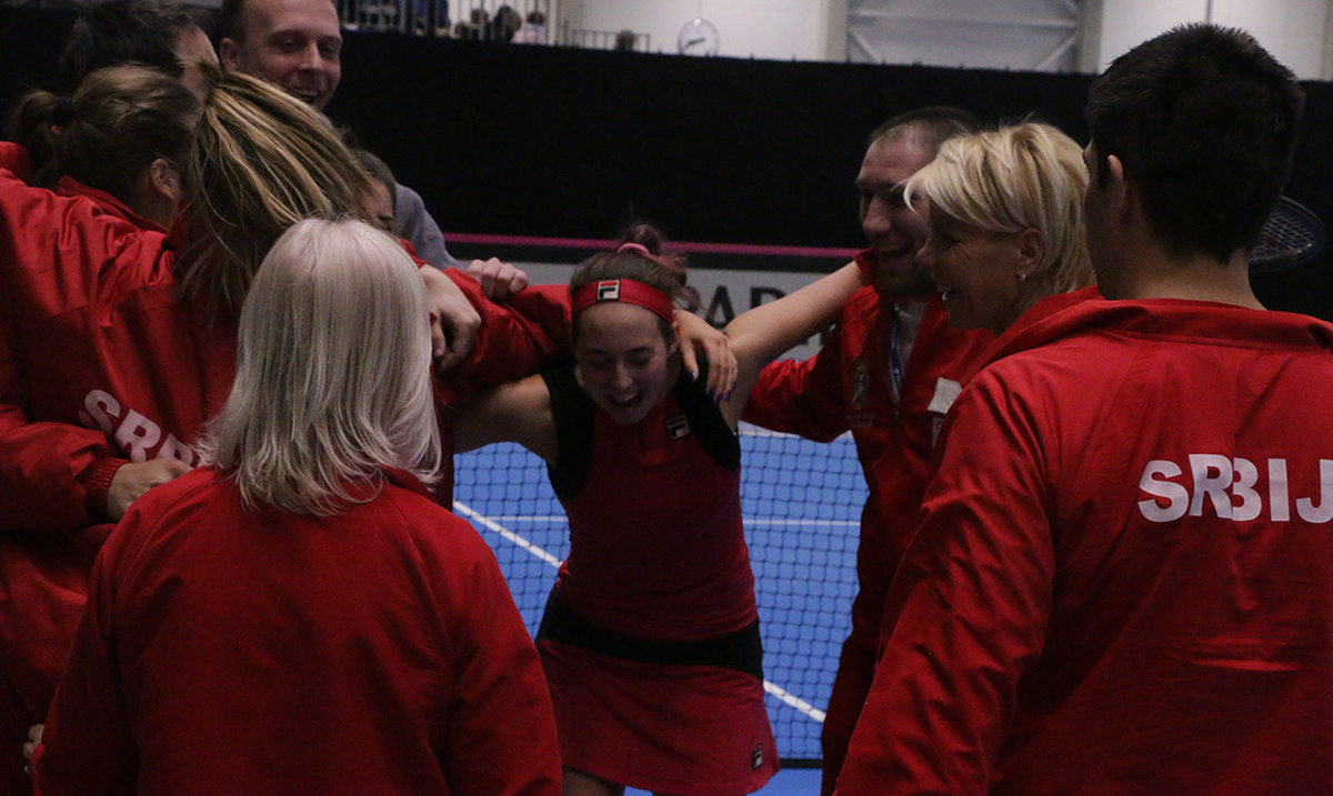 Pobedu Srbiji u mini plej-ofu protiv Poljske, u Prvoj grupi Evro-afričke zone, doneo je dubl Ivana Jorović i Nina Stojanović, koje su pobedile Magdu Linet i Katarinu Piter posle tri seta, 4:6, 6:4, 6:1.