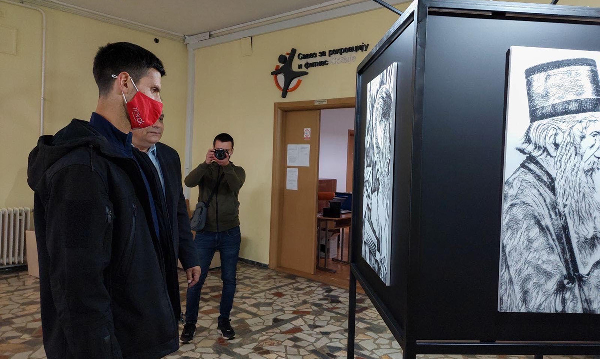 Novak Đoković je obišao stalnu izložbu fotografija u holu doma i mural patrijarha Pavla, novootvoreni teniski teren i sportsku salu unutar doma.