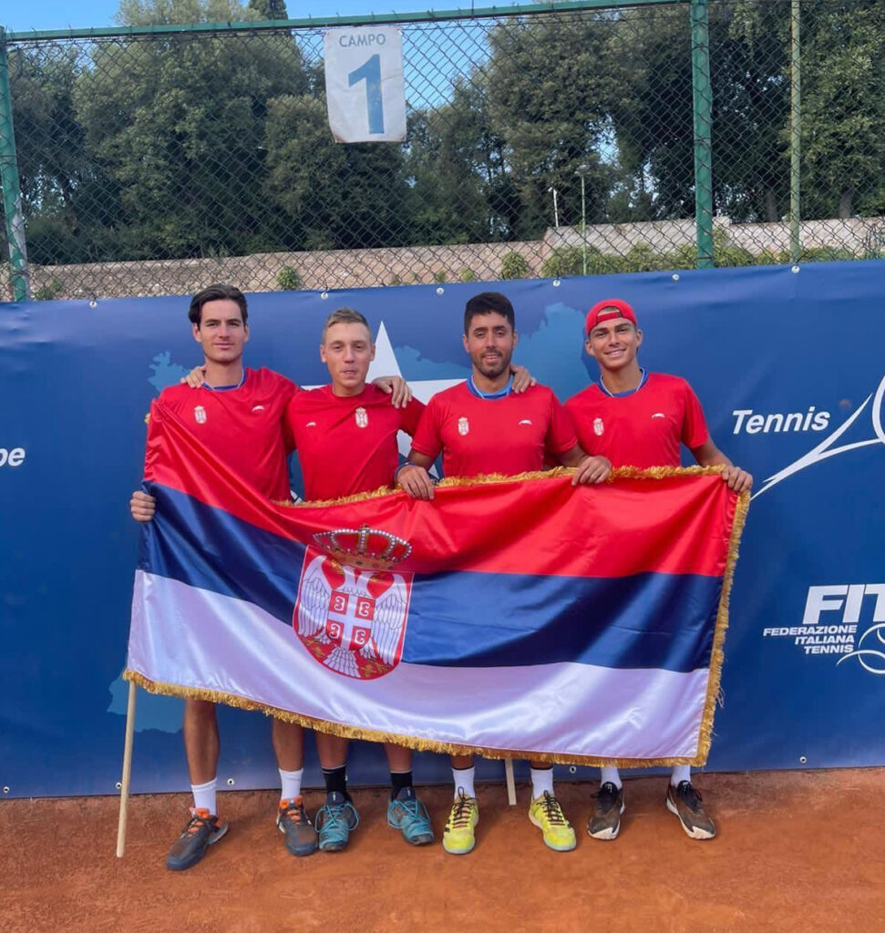 Muška juniorska selekciija Srbije u konkurenciji do 18 godina nalazi se na pragu osvajanja Ekipnog evropskog zlata, Npsakon sjajno odigranih kvalifikacija u Češkoj i plasmana na finalni turnir, tim Srbije u sastavu: Hamad Međedović, Marko Topo, Petar Teodorović, prevođeni saveznim trenerom Arsenijem Zlatanovićem pobedonosni niz nastavili su i na finalom takmičenju u Rimu.Voljom žreba naši momci su u prvom kolu odmerili snage sa reprezentacijom Ukrajine i pobedili 3:0 (Marko Topo – Artem Podorožnji 6:3, 6:0, Hamad Međedović – Vjačeslav Bielinski 6:4, 3:1 predaja Ukrajinca, dubl: Teodorović, Topo – Maksimčuk, Podorožnji 6:3, 6:2). Usledilo je polufinale protiv ekipe Hrvatske i pobeda 2:0. U finalu i borbi za zlato Srbiji naši momci će rekete uskrstiti sa selekcijom Francuske.