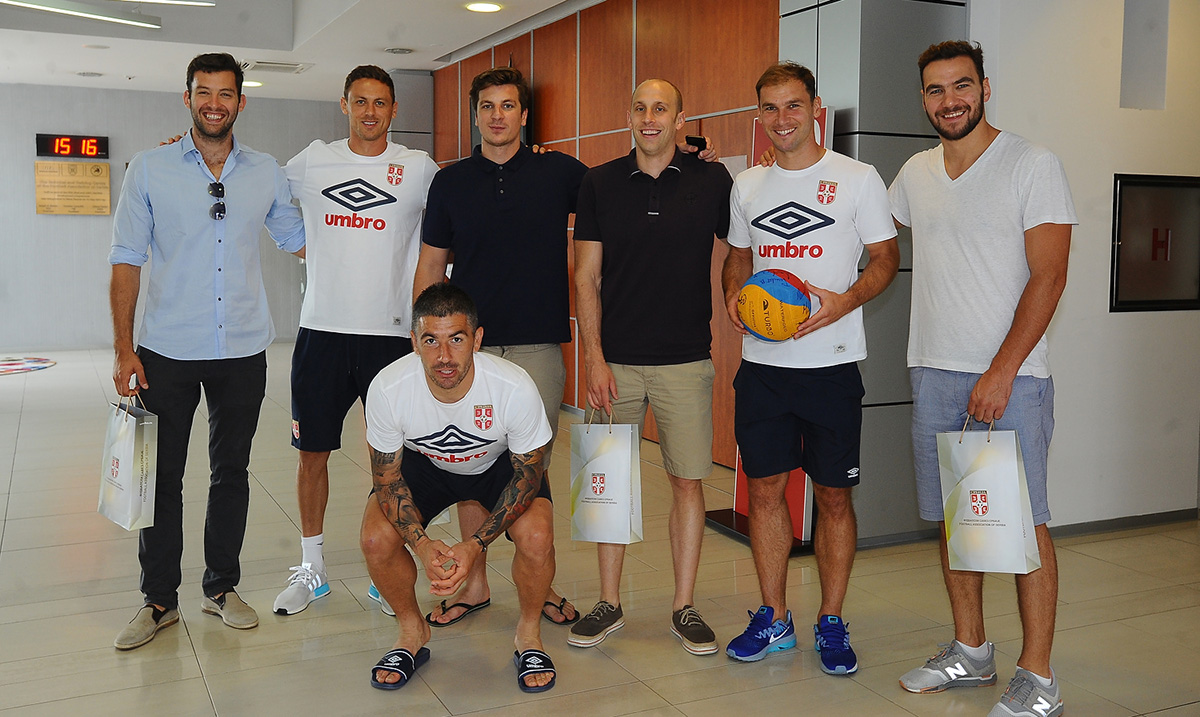 Selektor Dejan Savić i vaterpolisti Filip Filipović, Duško Pijetlović, Milan Aleksić i Andrija Prlainović, kao i tim menadžer Jugoslav Vasović, posetili su Sportski centar Fudbalskog saveza Srbije i razgovarali sa Branislavom Ivanovićem, Aleksandrom Kolarovim i Nemanjom Matićem, navodi se na sajtu FSS.