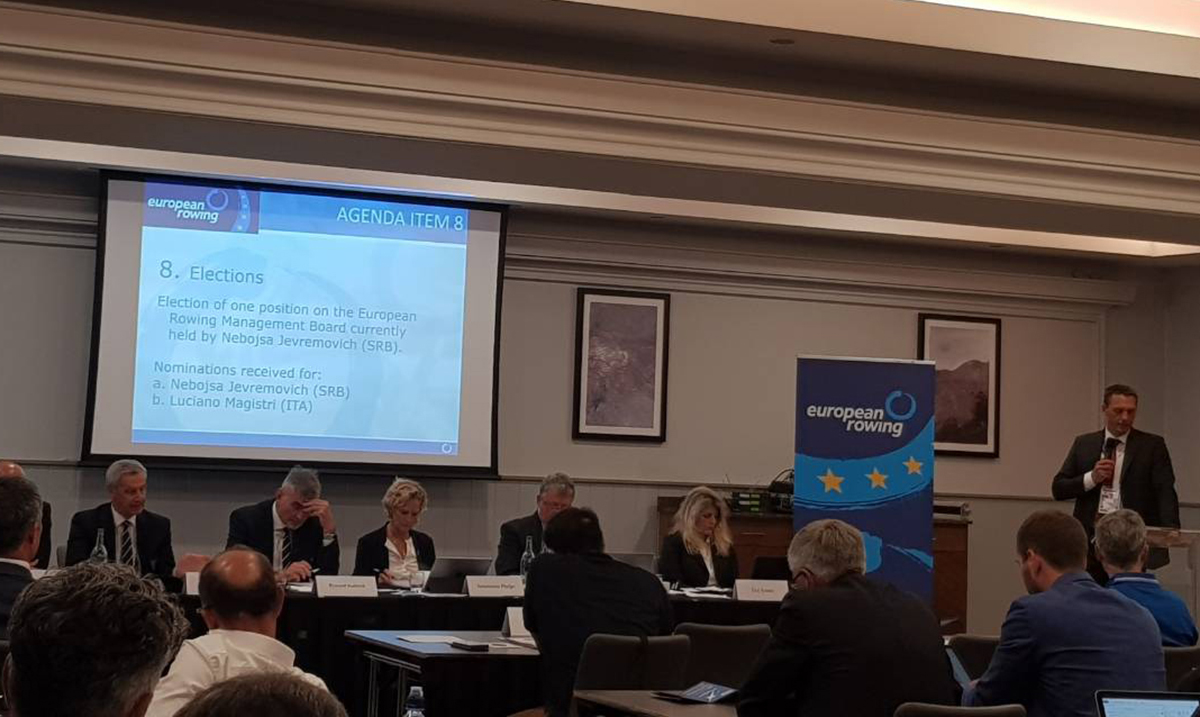 Lepe vesti za srpsko veslanje stižu iz Glazgova u kojem se u nedelju završava Evropsko prvenstvo za seniore. U toku pretpolsednjeg dana šampionata održana je Generalna skupština evropskih veslačkih saveza na kojoj je genrelani sekretar Veslačkog saveza Srbije, Nebojša Jevremović, reizabran za bord ove sportske organizacije u kojoj će funkciju jednog od članova obavljati naredne četiri godine. Pred članovima Skupštine legenda srpskog veslanja Nikola Stojić, koji je nakon završetka sjajne karijere postao deo kancelarije VSS, predstavio je kandidaturu Beograda za organizaciju Evropskog prvenstva za juniore 2020. Nakon toga Skupština je jednoglasno dodeli našem glavnom gradu organizaciju ovog takmičenja tako da ćemo na Regatnoj stazi na Adi Ciganiliji 30. i 31. maja 2018. imati priliku da gledamo najbolje juniore i juniorke Starog kontinenta. Biće to ujedno deveto veliko veslačko međunarodno takmičenje na Savskom jezeru posle Evropskog prvenstva za seniore 1932, Svetskog prvenstva za juniore 1978, Svetskog prvenstva za seniore do 23 godine 2003, Svetskog studentskog prvenstva 2008, Svetskog kupa 2012, Evropskog prvenstva 2014, Svetskog kupa 2017. i Svetskog kupa 2018.